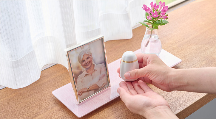 手元供養は、故人さまのお骨の一部を小さな骨壺・ペンダント・インテリア型の祈り台に納めて