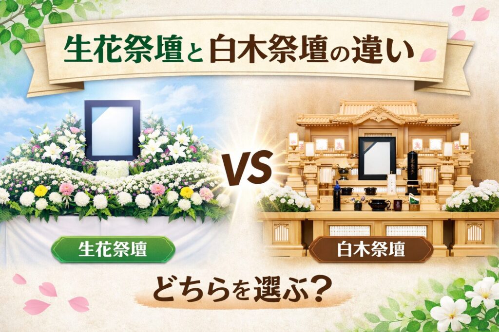 お葬儀の祭壇にはさまざまな種類がありますが、代表的なものが「生花祭壇」と「白木祭壇」です。どちらも故人様をお見送りするための大切な場所ですが、見た目や雰囲気、作り方に違いがあります。今回はそれぞれの特徴について、わかりやすくご紹介します。